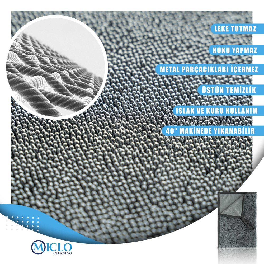 Mikrofiber dokusu sayesinde ıslak ya da kuru her tür yüzeyde mükemmel sonuç verir.; Yüksek emiciliği sayesinde tek seferde kurulayabilirsiniz.; Araç kaportası için oldukça uygundur.; 45x70cm ölçü 1800gr/m2 kumaş gramajı.; Bükümlü iplik yüksek tüylü.; Mikrofiber yüzeyi sayesinde uygulanan yüzeyi çizmez.; Kesinlikle Hav/Tüy/Leke bırakmaz.; Çamaşır makinesinde 60°C’ye kadar yıkanabilæir.; Her türlü yüzeyde kullanılabilir.; Geniş boyutları sayesinde kolayca kurulayabilirsiniz.