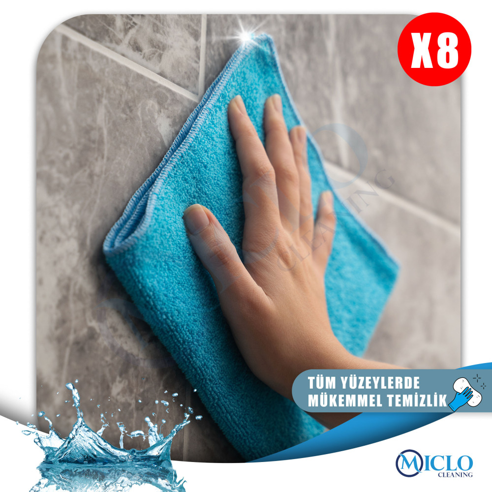 Mikrofiber Temizlik Bezi | Klasik Serii | 250 GSM | Banyo, Mutfak Bezi | 4 Renk x8 Adet